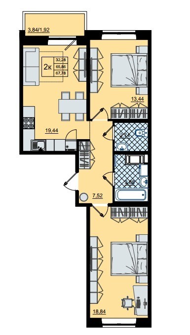 • Каждая квартира обладает собственным балконом, площадью от 3 до 4 кв.м.